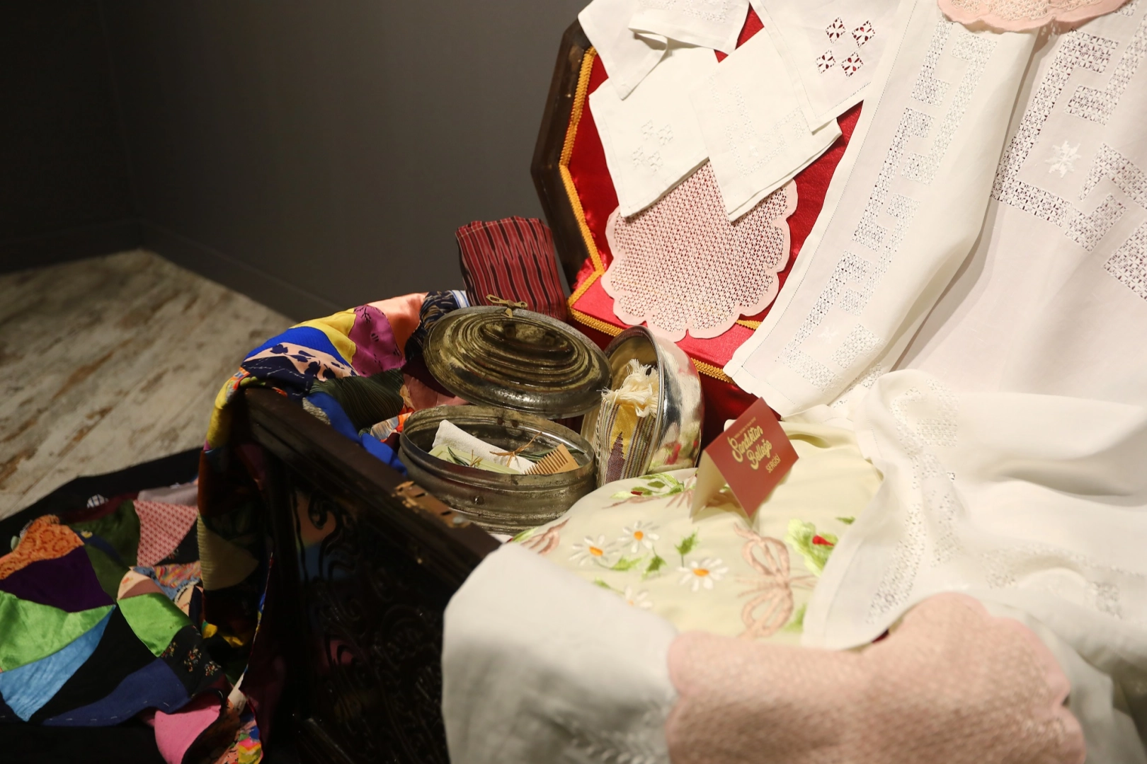 Gaziantep Büyükşehir Belediyesi’nin kültürel mirası koruma çalışmaları kapsamında hazırlanan “Sandıktan Belleğe: Meral Dai’nin 70 Yıllık Çeyizi” sergisi, Kahraman Emmioğlu Kültür ve Sanat Merkezi’nde kapılarını ziyaretçilere açtı. Sergi, 17 Şubat’a kadar gezilebilecek.