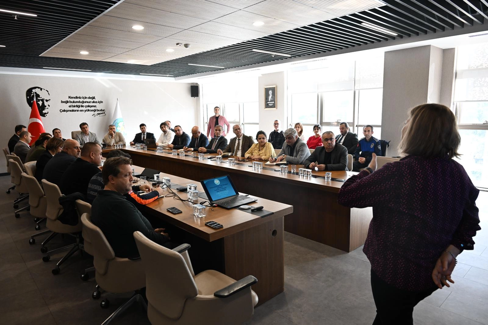 MANİSA (İGFA) - Manisa Büyükşehir Belediyesi bünyesindeki İnsan Kaynakları ve Eğitim Dairesi Başkanlığı koordinesinde düzenlenen toplantıya; Genel Sekreter Yardımcıları Ahmet Ata Temiz ve Erk Kayabaş’ın yanı sıra daire başkanları, şube müdürleri ve İSG temsilcileri katılım sağladı.